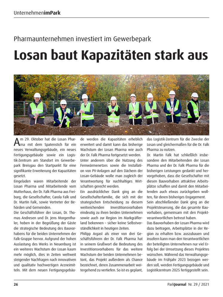 Auf die notwendige Erweiterung der Losan im Gewerbepark Breisgau weist Thomas Andresen, Geschäftsführer der Losan Pharma, hin: "Wir haben den Jahresumsatz von 47 auf heute 90 Millionen Euro gesteigert und die Zahl der Mitarbeitenden ist von 400 auf 600 gestiegen".
